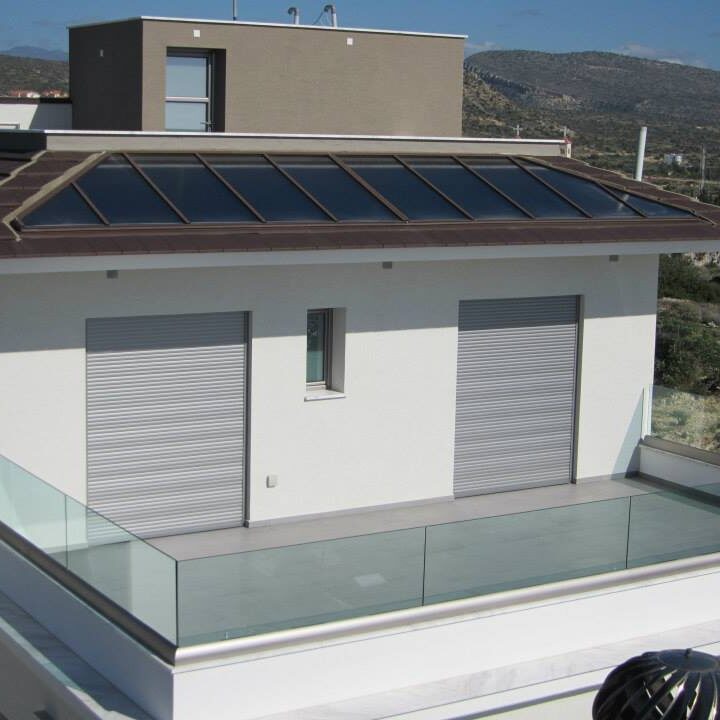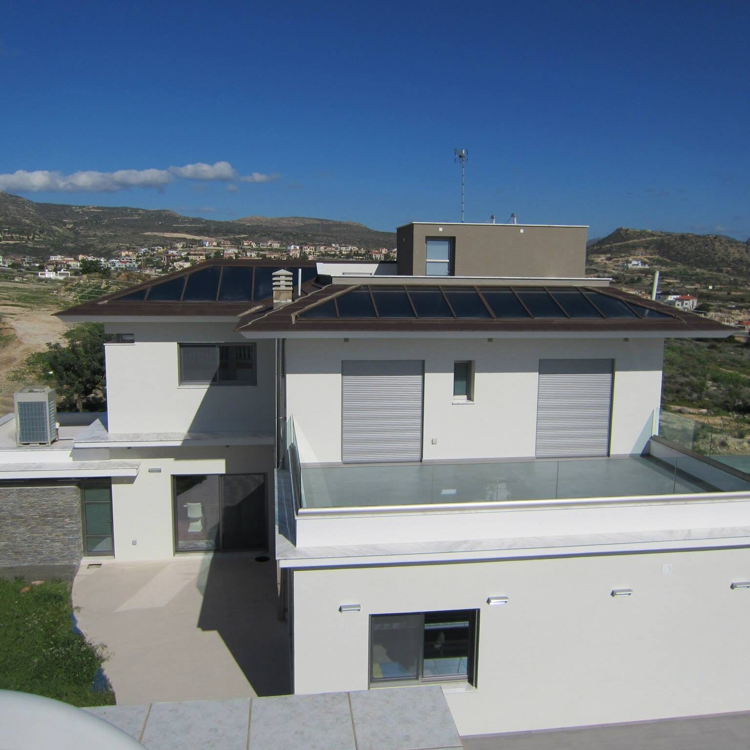 In a modern house 260m² in Agios Athanasios placed two collectors TiSUN FI – ”custom made InRoof” total collector surface 25m². And a solar hot water storage cylinder TiSUN PC 2000L. The concrete panels constructed in the shape and color of the roof and placed in the middle of the roof forming a part thereof. The owners of the house enjoy all year round warm water. Also, using the Solar System Central TiSUN save 1300L oil underfloor heating purposes equivalent to a reduction of 60% of total consumption. To system administered by 55% by the Republic of Cyprus ” ANA Trust Fund ” (Design, supply and installation of the system of SOLAR BEST Ltd)
